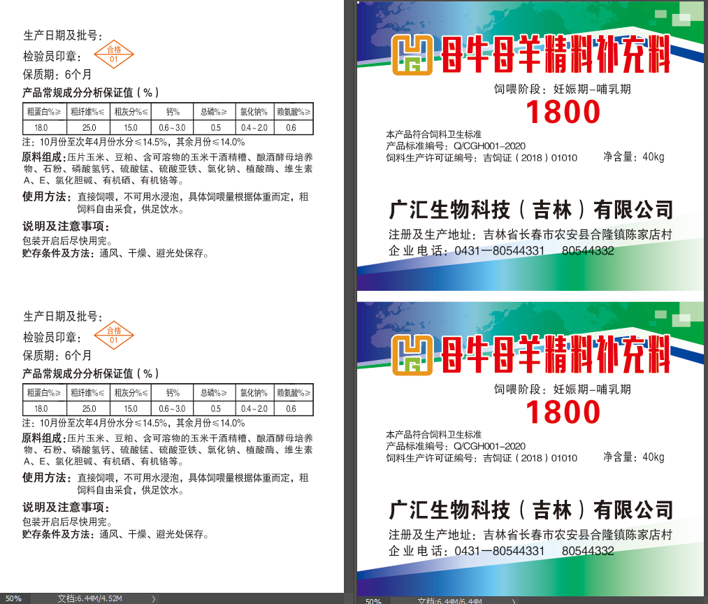 1800母牛母羊精料补充料